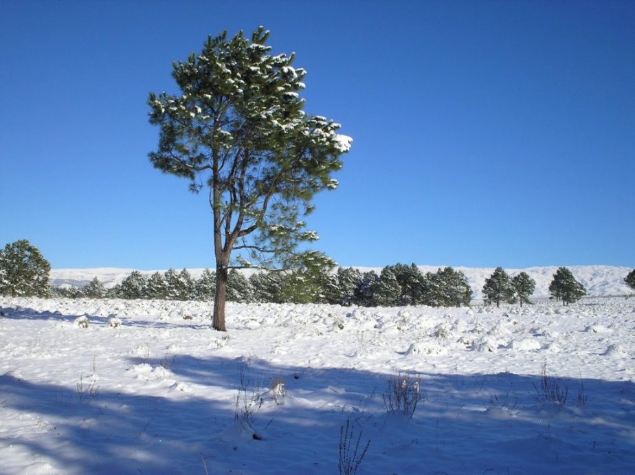 Vista de las Sierras Grandes nevadas desde las cabañas
