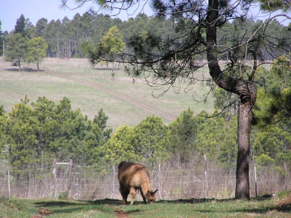 A lo lejos campos vecinos dedicados a la forestación y a la cría de ganado bovino y ovino.