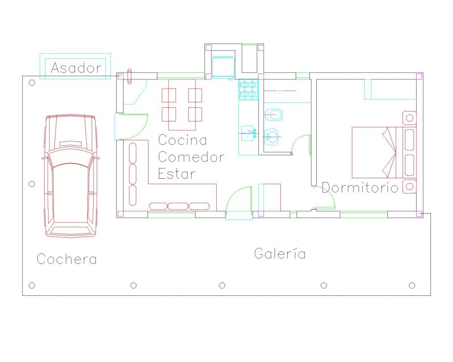 Un dormitorio, baño, cocina comedor estar con salamandra, galería, cochera y asador cubiertos. Superficie total cubiertas: 76 m2.