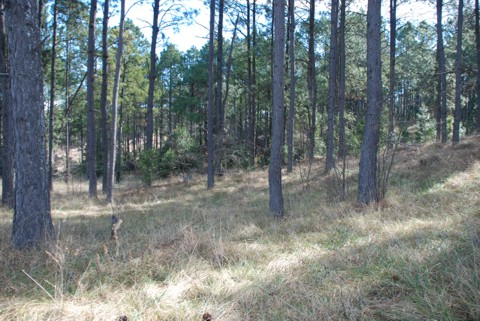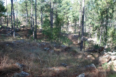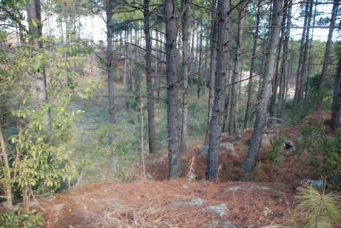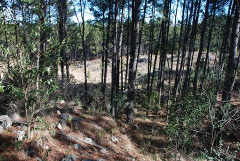 Con un frondoso bosque de pinos, con muchos afloramientos rocosos, y terrenos con declives pronunciados, con vertiente en verano.